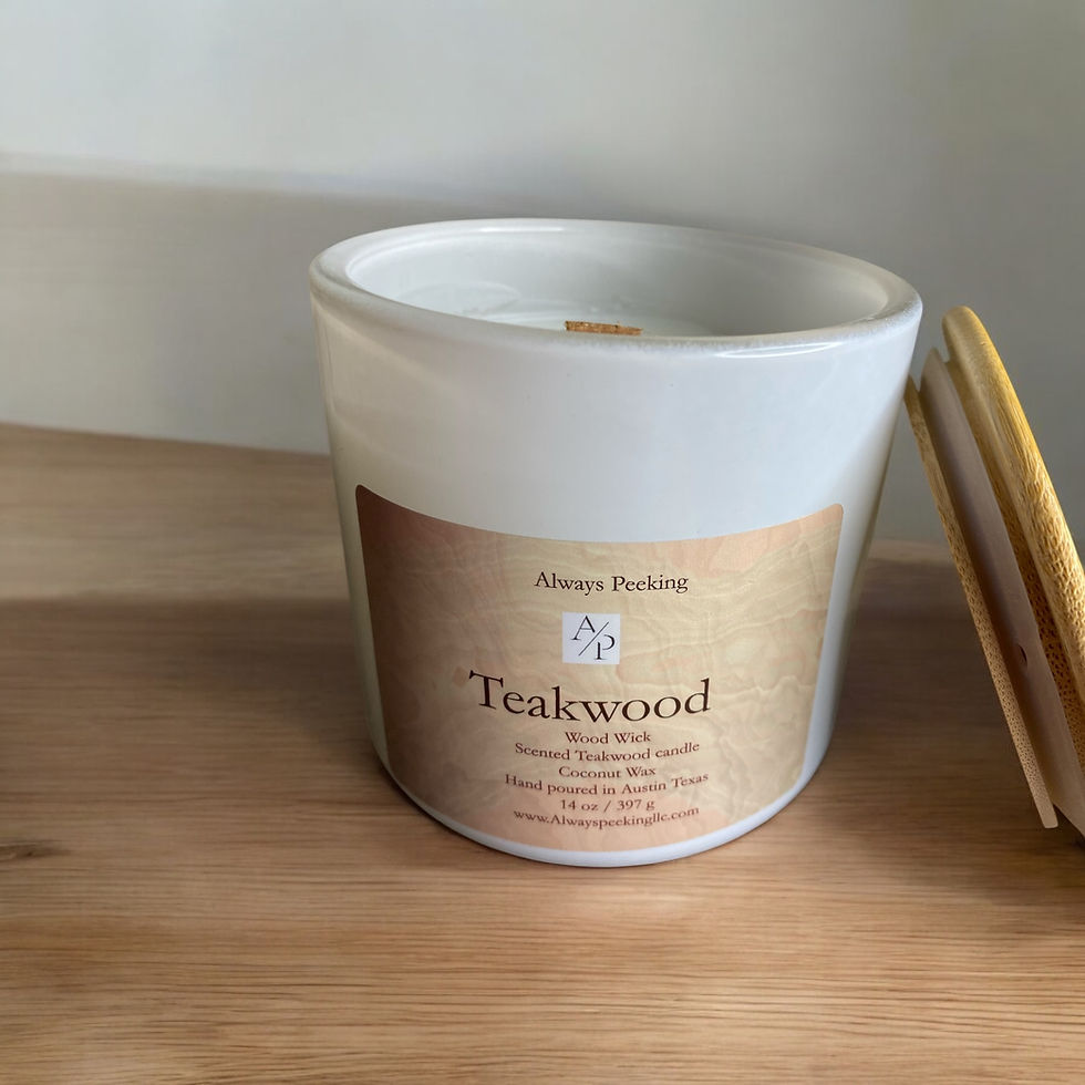Luxury Wood Wick Teakwood Scented Candle 16 oz