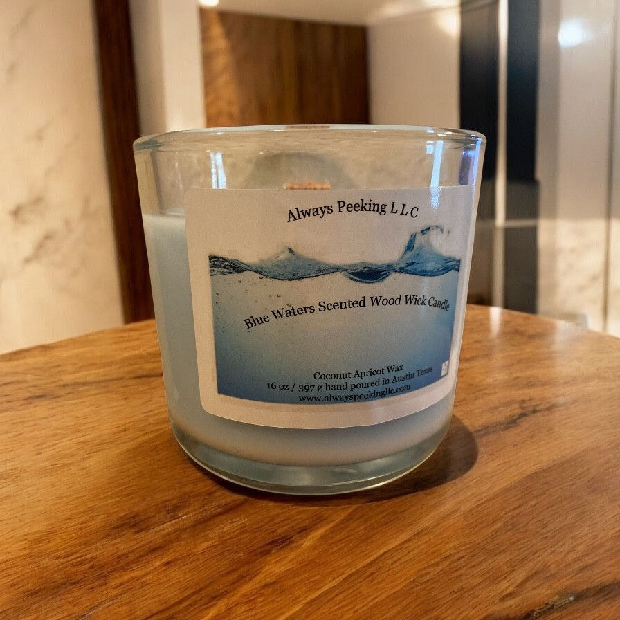 Luxury Wood Wick Blue Waters Scented 16 oz Candle